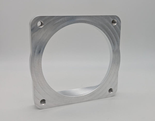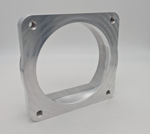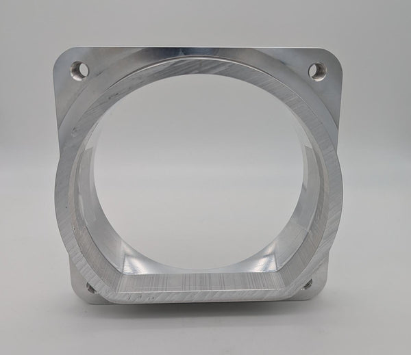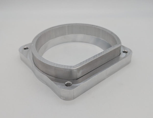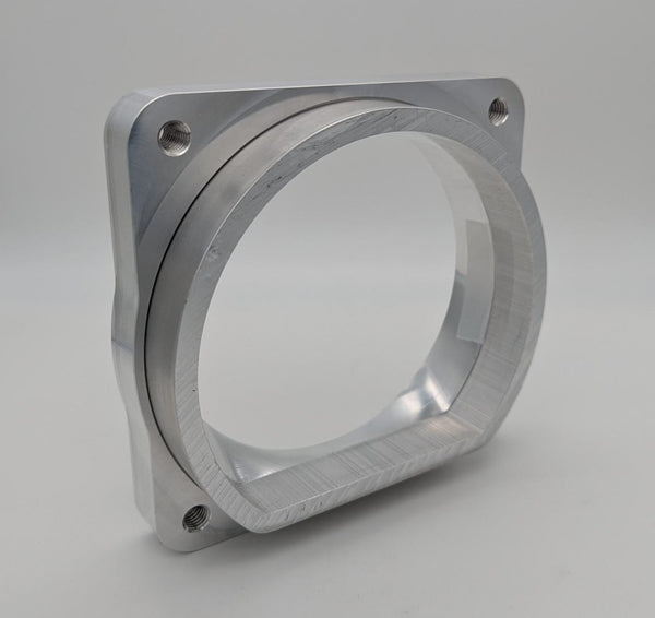 This adapter has been machined from 6061 aircraft quality aluminum and is designed to be welded on to our 5" D-Plenum material ONLY and accept our new 105mm throttle body on the other side. The adapter features a seamless transition from a 105mm opening to the D-Plenum shape. Price includes the adapter plate ONLY. No throttle body or D-Plenum material is included.